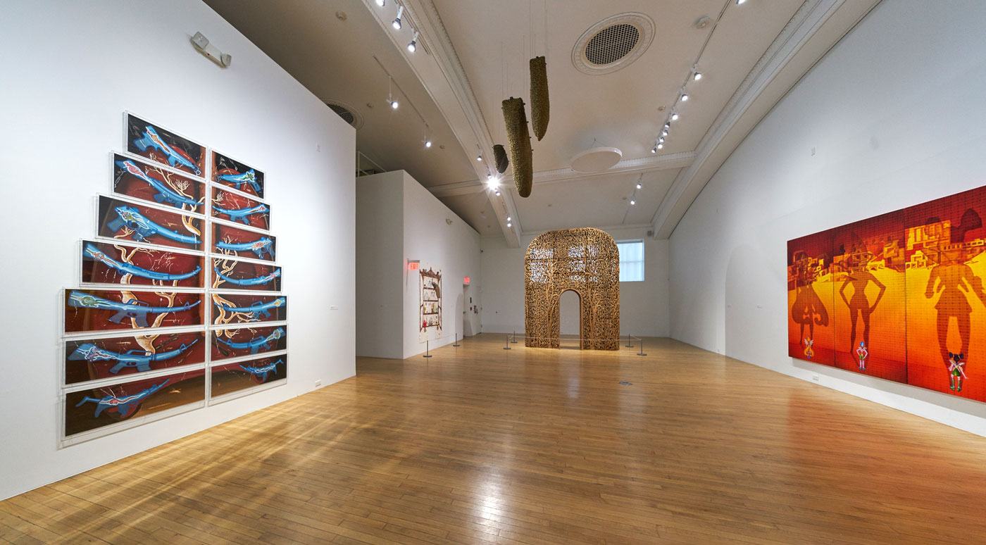 Another work by Shetty, Untitled, resembles a woven rug but is actually an intricately carved piece of wood. “The piece, like many in the collection, invites you to look closer,” says Pagano.