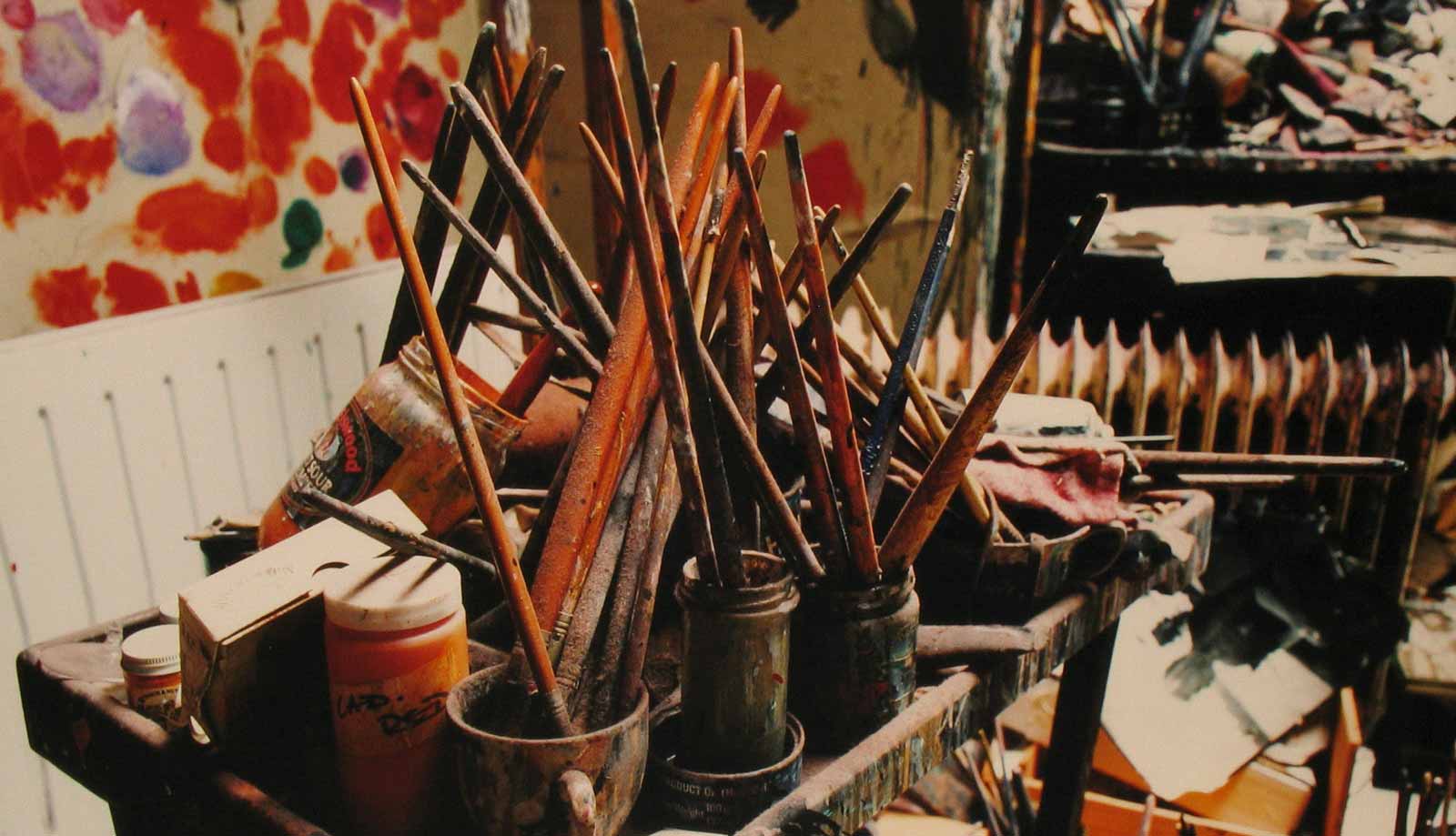 "I've been here for years—about twenty-three or more," Bacon told ITV's The South Bank Show host Melvyn Bragg, when he visited the studio in 1985. "It's kind of a dump that nobody else would want, but I can work here. These are a few of my abstract pictures here [pointing to the splotches of paint on the door and surrounding walls] because I use the walls and things to test the colors out on. I've tried to clean it up, but I work much better in chaos. I couldn't work if it was a beautifully tidy studio. It would be absolutely impossible for me. Chaos, for me, breeds images."