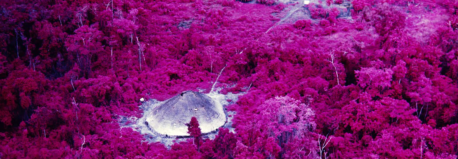 Born in Switzerland in 1931, Andujar immigrated to New York in 1946 after escaping persecution by the Nazis. Her father, of Hungarian and Jewish descent, died in the Dachau concentration camp. Andujar’s family history informed her search for meaning and led her to a career in photojournalism. In 1956, she moved to Brazil to join her mother. In the 1970s, the Brazilian government was under a military dictatorship and was responsible for opening the Amazon to mining, ranching, and logging, building roads, and bringing death, disease, and destruction to Yanomami territory. As a photojournalist, Andujar was drawn to cover this story and in 1974 she decided to spend an entire year living with the Yanomami, a year not taking photographs, but getting to know the people. The experience fostered lifelong friendships and resulted in a body of intimate, and often breathtaking images that transcend the boundaries of time and place expanding into realms beyond the physical. “She uses multiple exposures, or shakes the camera with the aperture open to create blurs of light, like drawings in the sky or on the ceilings of malocas,” said Thyago Nogueira, the head of contemporary photography at the Moreira Salles Institute and a curator of The Yanomami Struggle. “There are a series of artifices that she builds to create this translation of worlds, to help us see what they see.” The saturated color, the phantasmagoric magenta, and red/orange of earth on fire, mirror the intensity of the artist's experience.