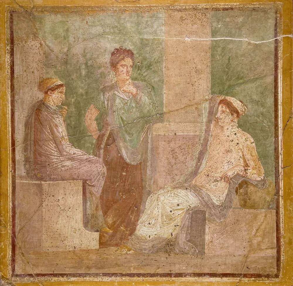 Women in Conversation. Fresco, Herculaneum, ca. 1st century CE [Museo Archeologico Nazionale di Napoli].