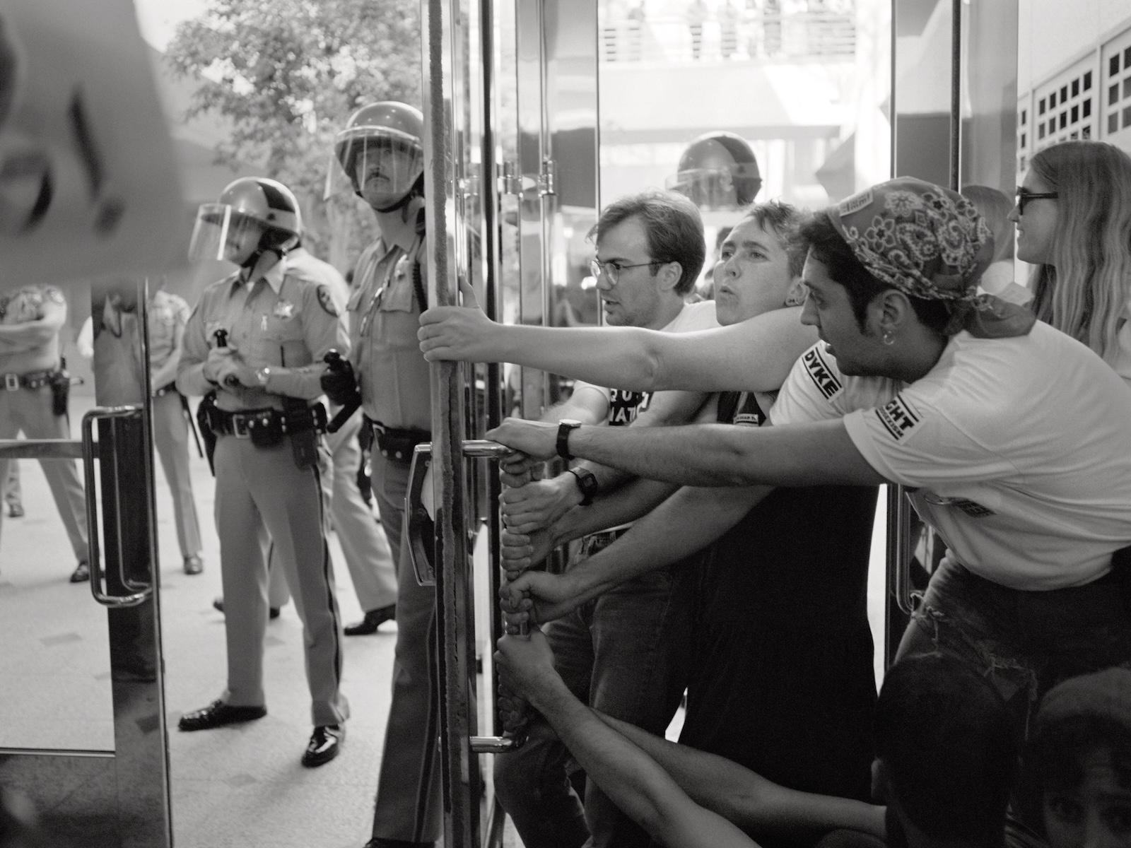 AB101 Demonstration, 1991, Catherine Opie. Courtesy Regen Projects, Los Angeles; Lehmann Maupin, New York, Hong Kong, London, and Seoul; Thomas Dane Gallery