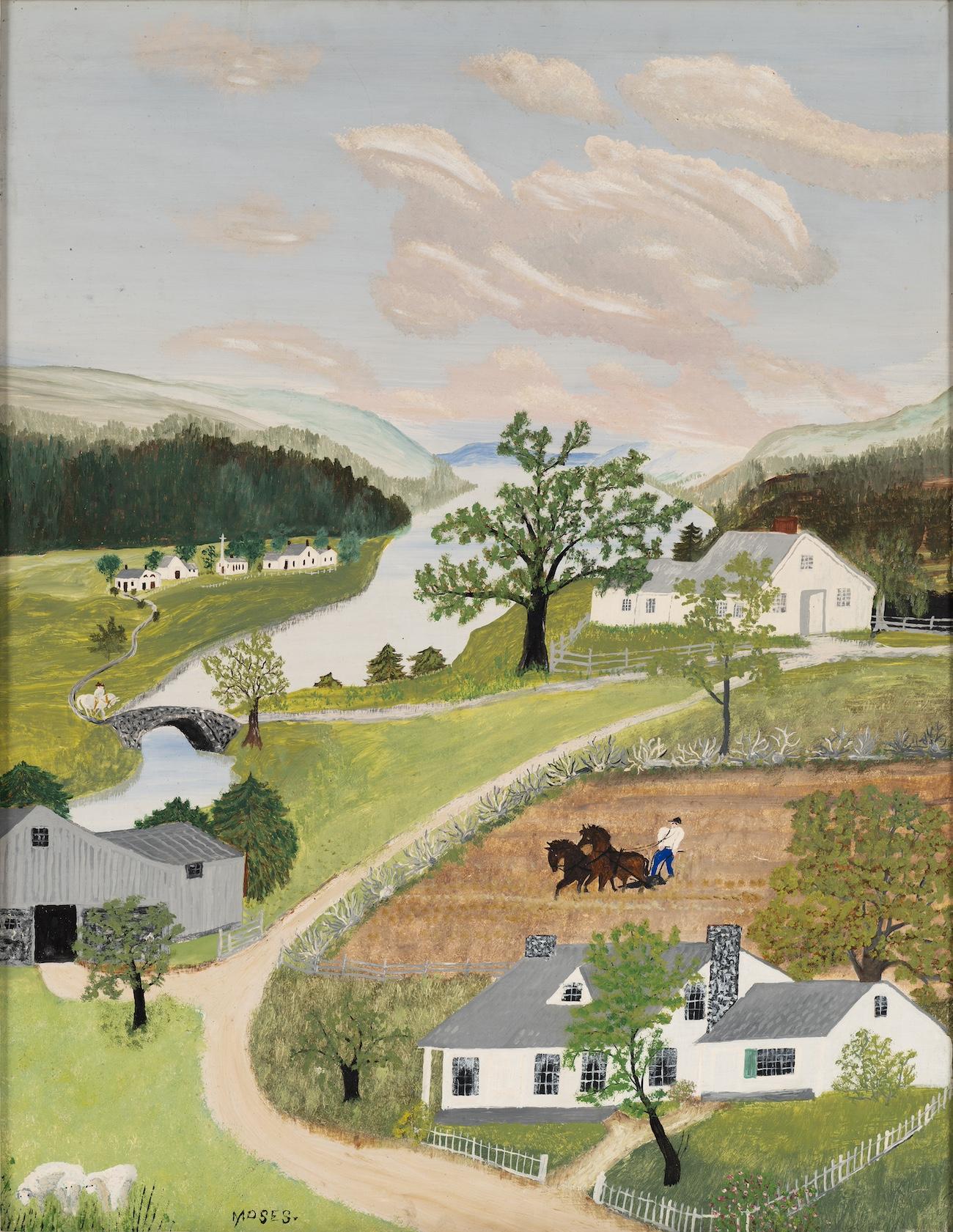 An exhibition at the Smithsonian American Art Museum, Grandma Moses: A Good Day’s Work, examines the impact of this beloved painter on the cultural imagination. Comprising 88 works, the exhibition includes many of Moses’ most celebrated paintings and explores Moses’ life, her artistic evolution, and her transformation from farm wife to famous artist in Cold War America, illustrated with photographs, ephemera, and Moses’ own words— drawn largely from her autobiography.