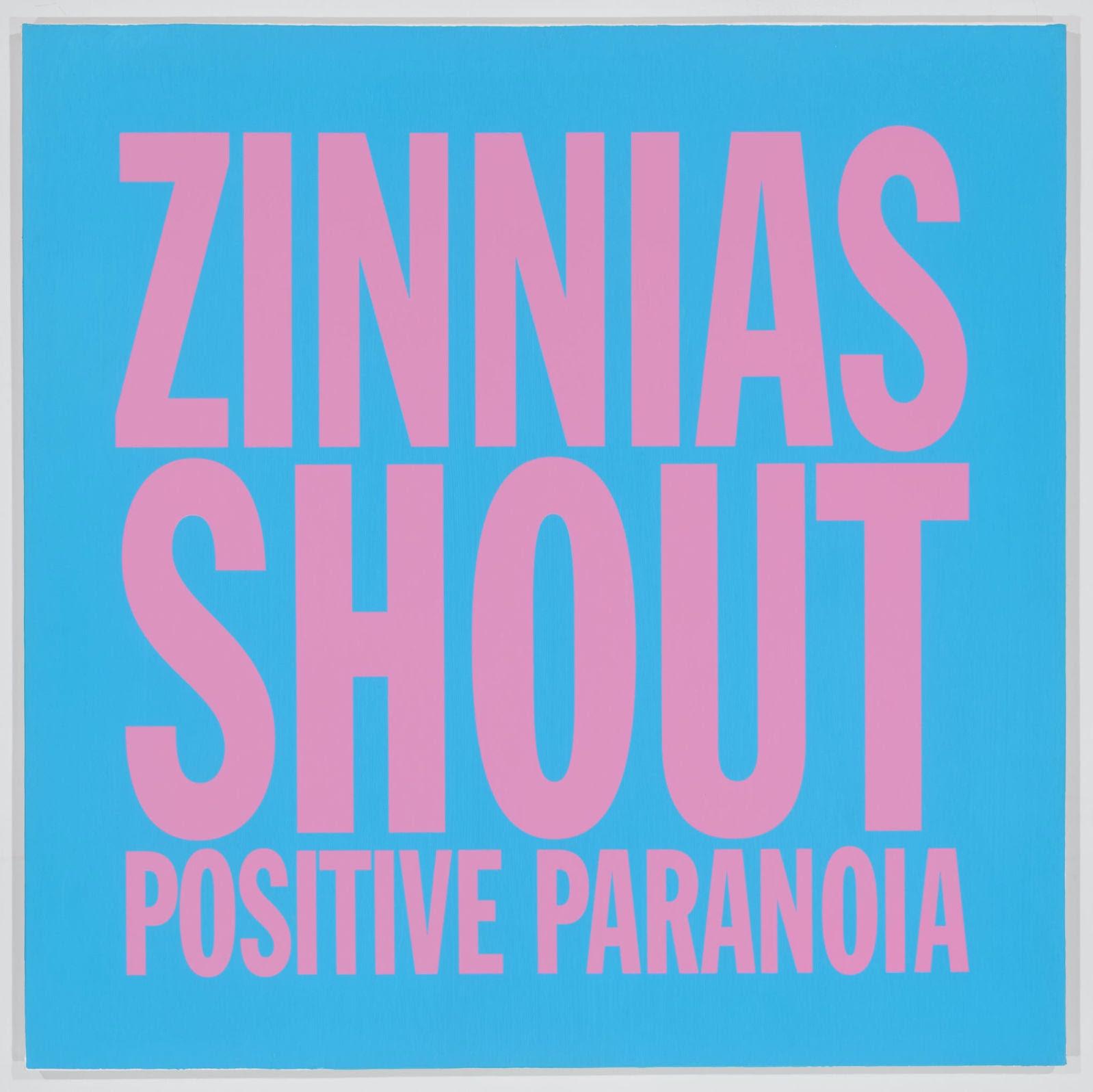 John Giorno, ZINNIAS SHOUT POSITIVE PARANOIA, 2017. Acrylic on canvas. 40 x 40 in (101.6 x 101.6 cm).