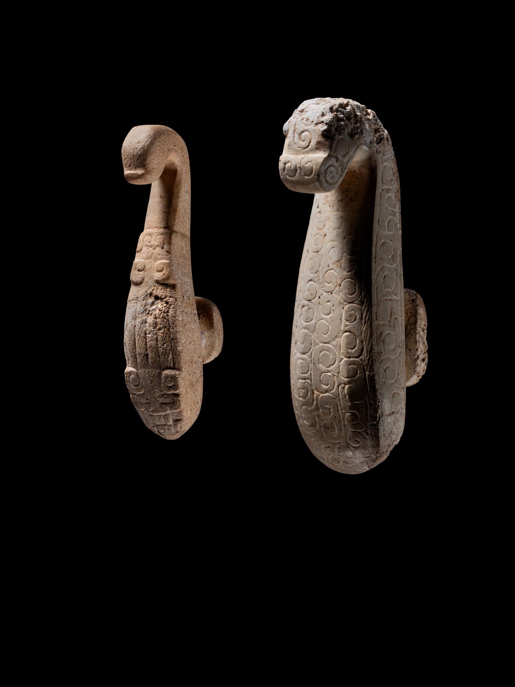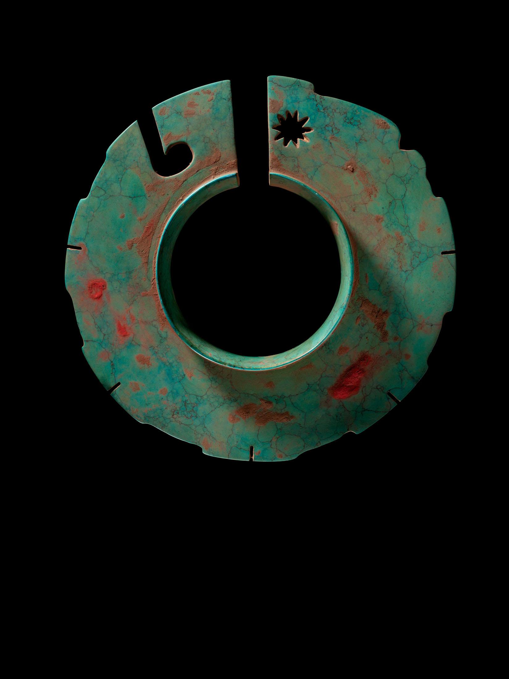 Laboriously and finely carved, the jade ritual objects, ornaments, and utilitarian objects on view are imbued with considerable meaning. These small sculptures are mystical, yet timeless, witnesses to the beginnings of a great civilization. The carvings were meant to be held and remain inviting, all but asking to be handled. Their beauty leads one to understand the Chinese proverb, “A gentleman does not part with his jade without good reason.” Likewise, there is a telling verse from the Chinese Book of Poems, “Thinking of the gentleman, he is as gentle as jade.”
