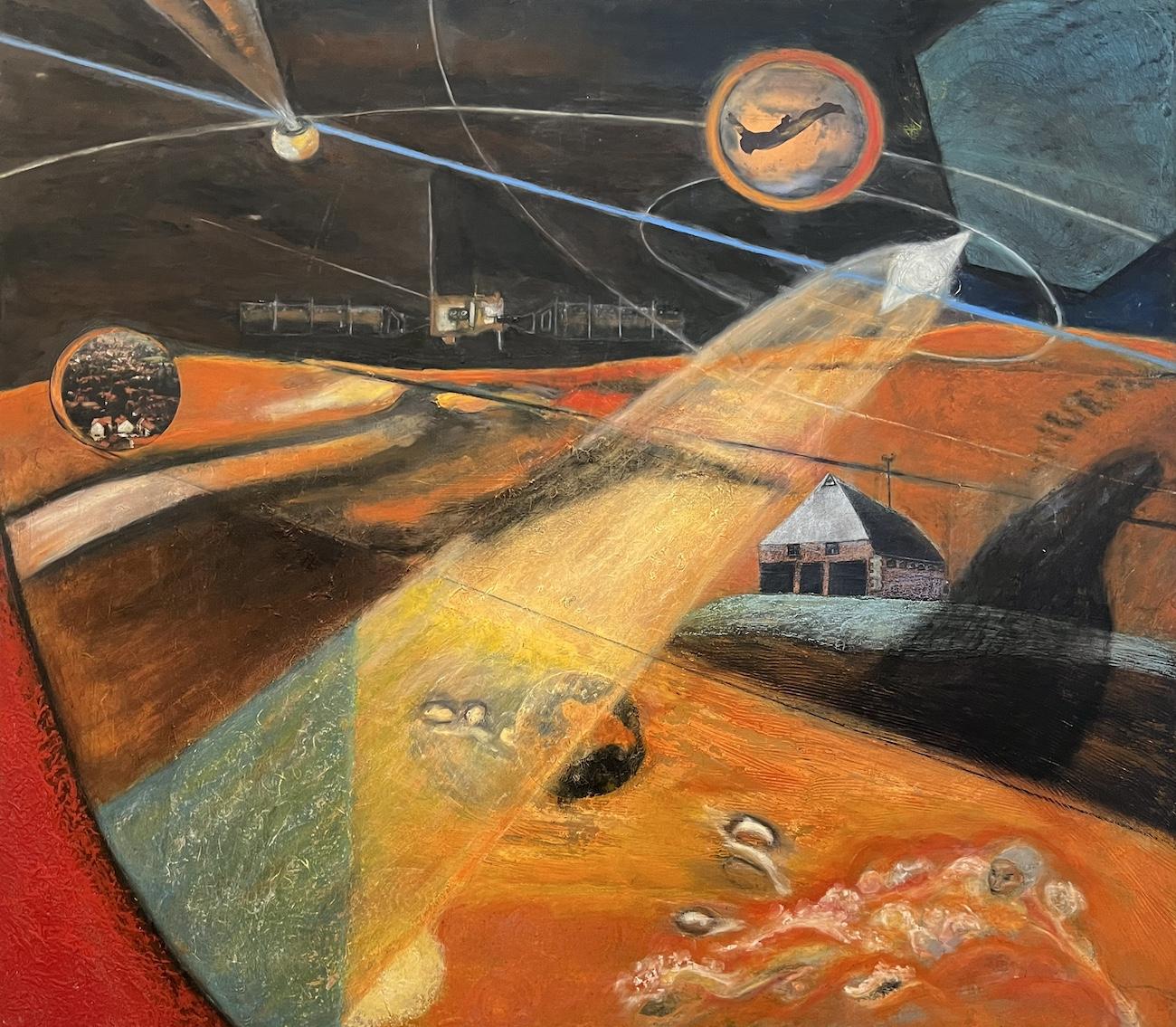 Batten, Karin - Swimming on Mars, 2018, Mixed Media on panel, 36 x 40 inches