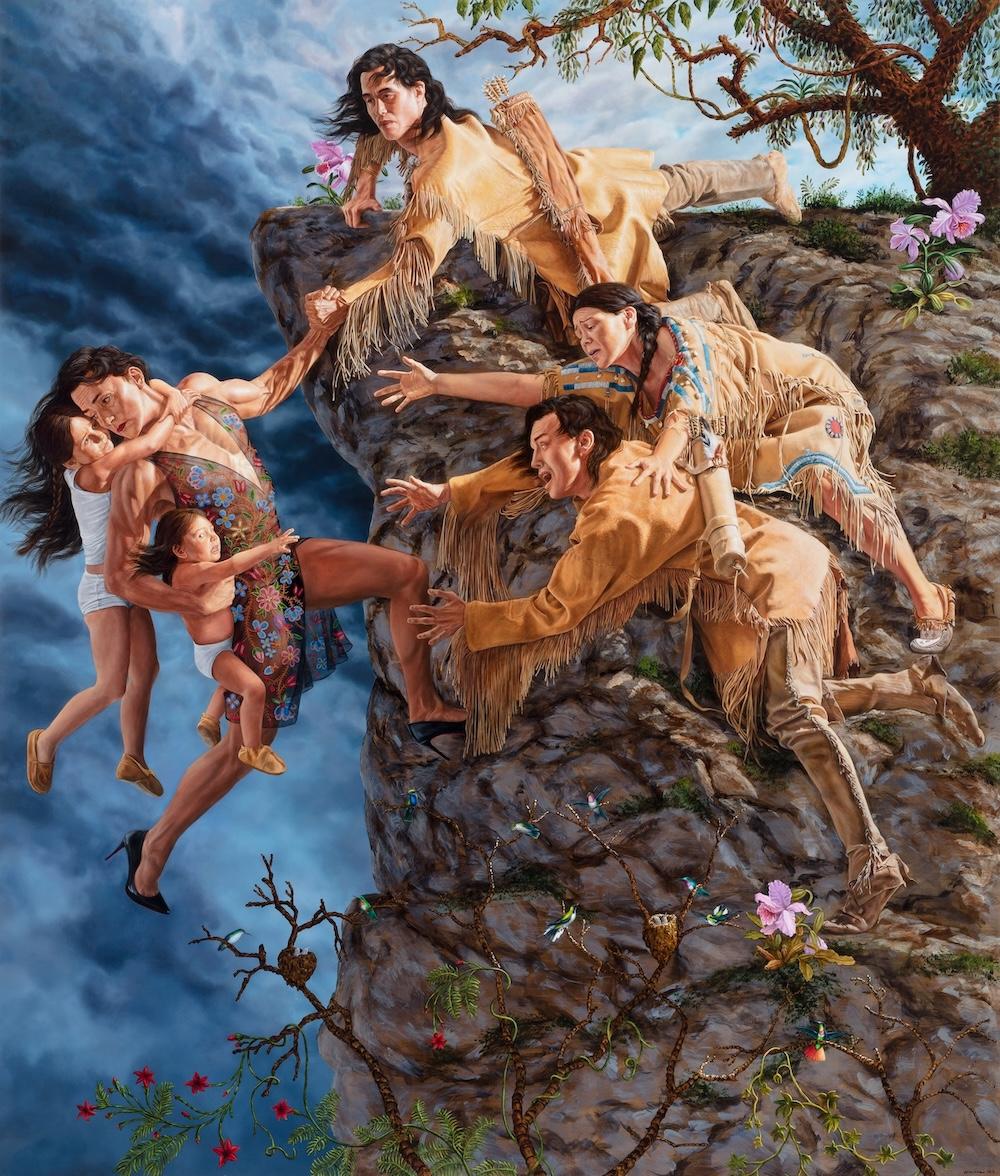 With allegory, wit, and striking artistry, Monkman tackles pressing issues such as the climate crisis, the effects of government policies on Indigenous peoples, intergenerational trauma, and the affirmation of Two-Spirit, queer, and trans Indigenous experiences. His compositions move through searing scenes of oppression, lament, humor, pride, and celebration—reminding us that history painting remains a powerful contemporary language.