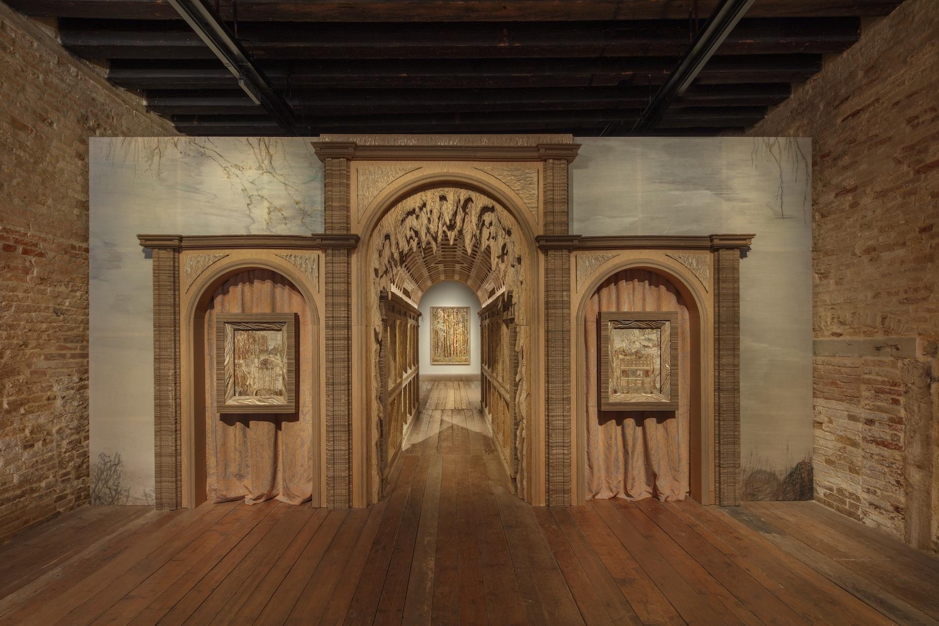 Eva Jospin, "Selva," 2024, wood, cardboard, drawings, embroideries, and various materials. 153 1/2 x 293 x 227 1/2 in. (390 x 744 x 578 cm).