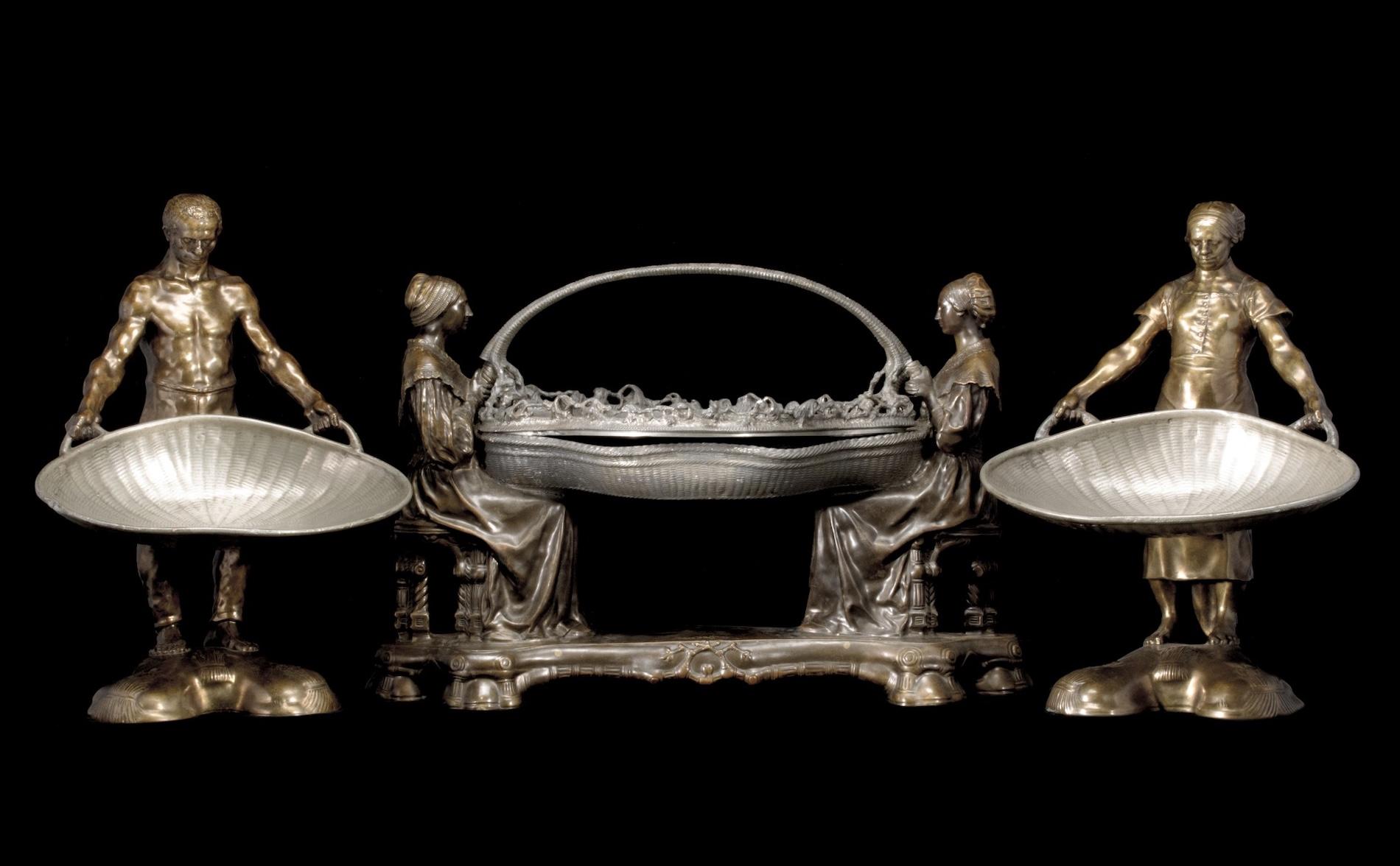 Day two’s offering of American and European two-dimensional works is punctuated by several noteworthy room-sized Persian carpets from the 19th century and three pieces from a monumental 65-piece dining set cast in bronze circa 1910, a commission by Angelo Mariani, the French creator and marketer of Vin Mariani, a popular 19th-century patent medicine and coca wine created in 1863. Marketed as a tonic for vitality, it heavily influenced the creation of Coca-Cola. Mariani commissioned Jean-Eugène Baffier (French, 1851–1920) to create an entire dining room design. Many examples from this ensemble are held at the Musée du Berry in Bourges.