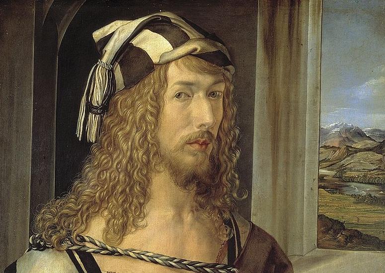 Albrect Dürer, Detail of Self-portrait, 1498. Oil on panel. Museo del Prado, Madrid, Spain.
